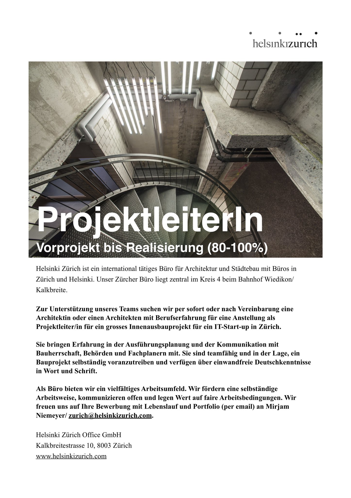 Helsinkizurich On Twitter Hz Job Opening Projektleiter In Vorprojekt Bis Realisierung 80 100 Innenarchitektur Hq Itstartup Https T Co M1six3cicz Https T Co Jwssi48kzn